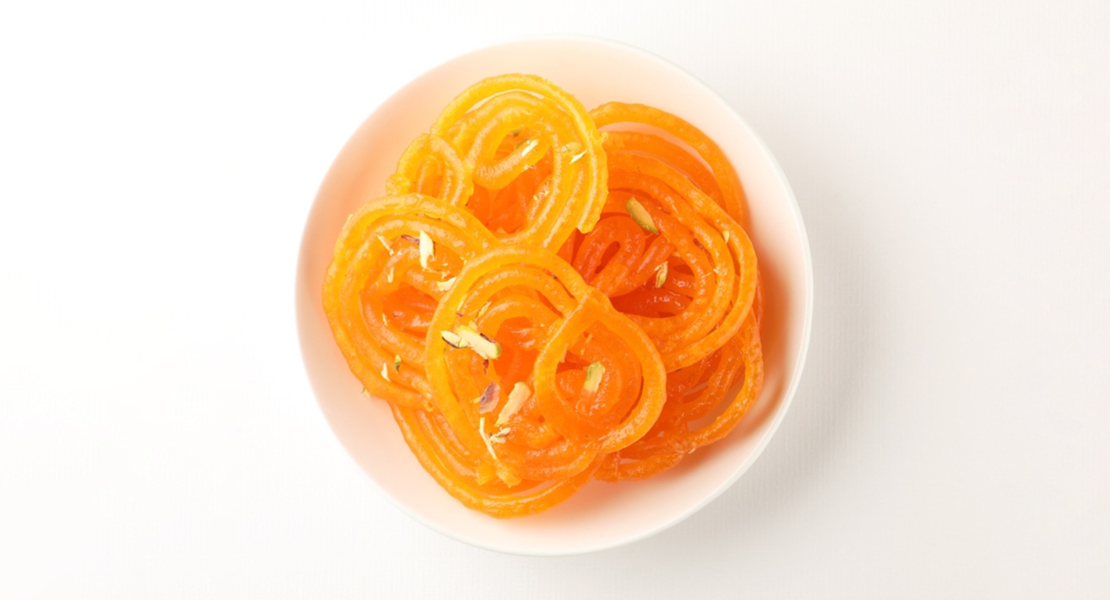 5. Fry until crisp and golden brown. Drain excess ghee and immediately dip the jalebis in warm sugar syrup for a few seconds.